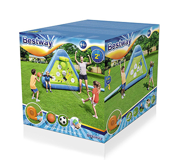 اسباب بازی بادی تخته پرتاپ توپ یکی از جدیدترین و کامل ترین اسباب بازی بادی کودکان می باشد که می تواند یک روز هیجان انگیز و سرگرم کننده را در کنار دوستان و خانواده به ارمغان آورد. کودکان می توانند در کنار .والدین خود به این بازی رقابتی بپردازند و توسط آن ها تشویق گردند که برای رقابت و پیروزی خود تلاش نمایند. این تخته بادی پرتاپ توپ علاوه بر بازی و سرگرمی می تواند برای شکوفایی استعداد کودکان بسیار مؤثر باشد. این تخته بادی پرتاپ یک پیروزی بزرگ برای کودکان و والدین است که با سه روش بازی ، کودکان می توانند برای بهبود مهارت های ورزشی خود و بهبود هماهنگی دست و چشم و حرکت پا ها برای فوتبال و سایر ورزش ها تلاش کنند. این محصول بادی یک تخته بادی ورزشی دو طرفه است که یک طرف برای بازی بسکتبال و دروازه امتیازی فوتبال و طرف دیگر برای بازی بیس بال می باشد که دارای ویژگی های بسیاری می باشد. این محصول دارای پمپ باد همراه بوده که در مدت زمان کوتاه محص.ل را باد و راه اندازی میکند همچنین دارای یک کیسه برای حمل راحت محصول و یا قرار گیری لوازم جانبی می باشد که این لوازم جانبی شامل 8 عدد میخ برای قرار گی محصول روی زمین ، 1 عدد توپ بسکتبال بای بازی بسکتبال، 2 توپ فوتبال برای بازی پرتاپ توپ و 3 عدد توپ بیس بال می باشد. ایمحصو بادی ساخته شده از مواد پلی استر با دوام و رنگی با روکش PVC مستحکم بودکه برای برگزاری مسابقات سرگرم کننده برای کودکان بالای 6 سال طراحی شده است که یک محصول ایمن و سرگرم کننده برای اوقات فراغت کودکان در نظر گرفته شده است.