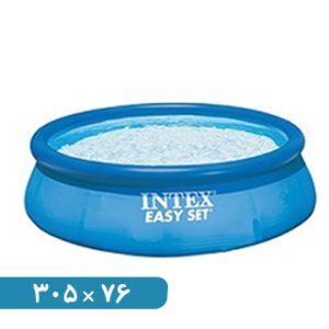 استخر ایزی ست در ابعاد : قطر ۳۰۵ سانتی متر و ارتفاع ۷۶ سانتی متر محصولی از شرکت اینتکس با ظرفیت آب ۳۸۵۳ لیتر مناسب برای افراد بالای ۵ سال ، با طراحی زیبای ماهی های دریایی ، برای نصب آن کافیست لبه بالایی استخر ایزی ست را باد کرده و شلنگ آب را به داخل آن بیندازید و آب را باز کنید. این مدل استخر در دو نوع (با پمپ و دون پمپ تصفیه) در بازار ارائه شده که قیمت آنها متفاوت است. جنس بدنه از پلاستیک pvc و تنها لبه بالایی آن بادی می باشد. بدنه ای که دارای انعطاف بسیار بالایی بوده به همین دلیل امکان جمع شدن در حجم کوچکتری را برای حمل آسان خواهد داشت. بدنه ای که در برابر دما و فشار آب و حتی نور آفتاب مقاومت لازم را خواهد داشت. این استخر با توجه به ابعاد و سایز خود می تواند گزینه خوبی برای تفریحات آبی خانگی باشد. این استخر توسط نمایندگی اینتکس قابل عرضه به تمامی نقاط ایران خواهد بود.