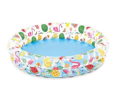 استخر بادی کودک تابستانی اینتکس یکی از سبک ترین و ارزان ترین استخر های بادی جدید (2019) تولید شده توسط شرکت اینتکس بوده که برای تفریحات آبی و حتی توپی کودکان سنین 3 تا 5 سال عرضه شده است. استخری با حجم و وزن بسیار مناسب که قابل استفاده در مسافرت های مختلف بوده و به دلیل طراحی شیک و کودک پسندانه خود مورد استقبال زیادی قرار گرفته است. این محصول طراحی بدنه گرد داشته و از ساختار بدنه دو لایه بهره مند می باشد که هر لایه باد شو بدنه توسط دریچه باد مجزایی راه اندازی می شود تا استخر بادی کودک تابستانی شکل کامل را به خود بگیرد. این محصول به تنها به عنوان استخر آب بلکه امکان استفاده از آن به عنوان استخر توپ نیز فراهم خواهد بود. جنس بدنه اصلی از پلاستیک PVC وینیل با رویه شفاف بوده و از طرح های زیبایی برای آن استفاده شده تا هنگام پر کردن استخر از آب جلوه زیبایی به خود بگیرد. این بدنه در برابر دما و فشار عادی آب و همچنین نور آفتاب مقاوم بوده از همین رو می توان استخر مربوطه را در فضای باز استفاده کرد. ارتفاع بدنه استخر بادی ارزان کودک تا لبه به 25 سانتی متر رسیده اما عمق مفید آن برای جلوگیری از سر ریز شدن آب به 18 سانتی متر می رسد اما با این وجود داشتن ظرفیت آب 150 لیتری مقداری بسیار مناسب برای این کالا محسوب می شود.