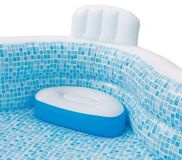از ویژگی های مهم این محصول که باعث شده خریداران به آن علاقه زیادی پیدا کنند جنس بدنه و مواد اولیه به کار رفته در آن است که این محصول دارای جنس بدنه ای از PVC با رویه طرح چرم بوده که دارای ساختار دو طبقه می باشد که روی یکدیگر به طور متصل قرار گرفته شده است. این استخر بادی دارای رنگ بدنه آبی آرامش بخش بوده که از لبه و پشتی با رنگ سفید بهره می برد که دارای طراحی داخلی موزاییک شکل می باشد که دارای صندلی بادی در دو طرف استخر بادی بوده است. استخر بادی خانوادگی دارای کیفیت و جنس بدنه عالی بوده که دوام و استحکام مناسبی داشته و در برابر تابش نور خورشید و دمای آب دچار پارگی و پوسیدگی نمی شود. برای خرید این استخر بادی می توانید با نمایندگی اینتکس در ایران که با نام ایران اینتکس شناخته می شود تماس حاصل فرمایید و یا می توانید از همین صفحه در فروشگاه اینتکس آن را به سبد خرید خود اضافه کرده و در کوتاه ترین زمان ممکن این استخر بادی خانوادگی طرح دار را درب منزل تحویل بگیرید.
