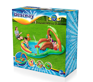 استتخر بادی کودک بست وی طرح جنگل یک محصول زیبا و دوست داشتنی برای کودکان است کخ با رنگ های استفاده شده در آن محیطی شاد برای کودکان به وجود آورده است . ابعاد این استخر بادی کودک طول 295 سانتی متر و عرض 199 سانتی متر است و ارتفاع آن 130 سانتی متر است که مناسب جهت استفاده کودکان بالای 2 سال است . ظرفیت آب این استخر بادی 214 لیتر آب است و تحمل وزن آن 45 کیلوگرم است . جنس بدنه ی این محصول از پی وی سی دولایه ساخته شده گه بسیار مقاوم است و در برابر ضربه و نور آفتاب و گرما نیز مقاوم و محکم است و از این محصول می توانید با خیال راحت در محیط باز و حیاط نیز استفاده کنید بدون نگرانی از تغییر رنگ یا طرح محصول .