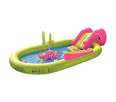 استخر بادی کودک سرسره دار طرح هشت پا یکی از بزرگترین استخر بادی تولید شده با طراحی مجموعه بازی بادی برای کودکان زیر 3 سال بود که دارای عمق کم و لوازم بادی تفریحی بیشتر نسبت به انواع استخر بادی ساده می باشد. این محصول در واقع دارای یک سرسره بادی متصل به بدنه با دریچه باد مجزا ، یک عروسک بادی طرح هشت پا در قسمت میانی با قابلیت آبپاش در خود و چند حلقه بادی برای تفریحات بیشتر کودکان است از همین رو به مجموعه بازی آبی معروف می باشد. ساختار و طراحی بدنه به صورت بیضی شکل بوده و ابعاد راه اندازی شده آن به () می رسد. در این ابعاد ارتفاع ذکر شده تا بالاترین نقطه بدنه یعنی سرسره بادی بوده اما ارتفاع و عمق مفید استخر به 20 سانتی متر می رسد از همین رو قادر است تا مقدار 434 لیتر آب را در درون خود جای دهد. البته به دلیل به کار بردن متریالی به نام پلاستیک PVC با روکش وینیل این محصول انعطاف پذیری بالایی پیدا کرده تا امکان جمع شدن در حجم و اندازه های کوچکتر را داشته باشد بنابراین حمل و جا به جایی آن در مسافرت ها به سادگی انجام خواهد شد. این نوع متریال با ساختار دو لایه خود در برابر فشار و دمای متفاوت آب و همچنین نور آفتاب مقاومت لازم را خواهد داشت بنابراین می توان با خیالی راحت در فضای باز استفاده کرد. از ویژگی های دیگر این محصول می توان به کار کردن آبپاش بادی این استخر توسط شلنگ آب و تغذیه شدن توسط آب لوله کشی داخل منزل و همچنین داشتن چند توپ کوچک رنگی اشاره کرد. برای خرید استخر بادی سرسره دار طرح هشت پا کودک می توان محصول خود را در فروشگاه ایران اینتکس به دو روش اینترنتی و یا تلفنی ثبت کرد.