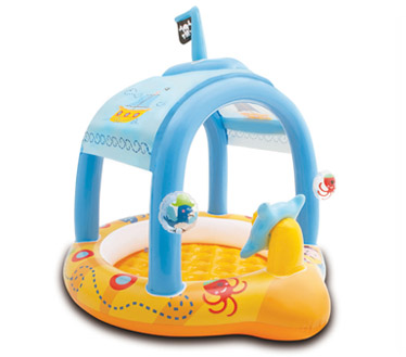استخر بادی کودک سقف دار یکی از کوچکترین استخر بادی تولید شده برای تفریحات آبی کودکان زیر 3 سال بوده که توسط شرکت اینتکس برای تفریحات آبی در فصول گرما و حتی داخل منزل عرضه شده است. این استخر بادی طراحی و ساختار بدنه مشابه یک قایق داشته و از مهمترین ویژگی ها در ساختار بدنه اصلی آن می توان به کف بادشو و سایه بان بادی سرخود اشاره کرد. کف بادشو محلی نرم برای فرزندان شما ایجاد کرده که خود توسط دریچه باد مجزا راه اندازی می شود. همچنین وجود یک سقف بادی در جلوگیری از برخورد مستقیم نور آفتاب بسیار موثر خواهد بود تا کودکان در برابر اشعه آفتاب در امان باشند. این محصول دارای جنس بدنه ای از نوع PVC وینیل داشته که نوعی متریال سبک با انعطاف پذیری بالا می باشد. این متریال در برابر نور آفتاب مقاوم بوده به همین دلیل می توان با خیالی راحت در فضای باز استفاده کرد. ابعاد راه اندازی شده استخر بادی سایه بان دار کودک برابر با (طول: 107 سانتی متر ، عرض: 102 سانتی متر ، ارتفاع: 99 سانتی متر) بوده که ارتفاع ذکر شده برای آن تا بالاترین نقطه بدنه می باشد از همین رو عمق مفید آن به 15 سانتی متر می رسد به همین دلیل قادر است تا مقدار 42 لیتر آب را صرفا جهت تفریحات آبی در خود جای دهد. از این استخر بادی کودک به دلیل ابعاد کوچک خود حتی می توان به عنوان وان بادی جهت استحمام کودکان استفاده نمود. برای خرید استخر بادی کودک سقف می توان به دو روش اینترنتی و یا تلفنی محصول خود را در فروشگاه ایران اینتکس ثبت سفارش کنید.
