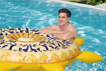 تشک بادی روی آب طرح خورشید بست وی تشکی ساخته شده شبیه به خورشید می باشد که زیبایی ظاهری بسیار جالب و جذابی را دارد . این تشک تقریبا به صورت گرد ساخته شده است ، برای اینکه بیشتر شبیه به یک خورشید شود ، پرتو های نوری به صورت بادی و با بدنه زرد رنگ در ساخت تشک بادی روی آب طرح خورشید بست وی استفاده شده است که آن را بیش از پیش شبیه به تشک بادی طرح خورشید کرده است . این تشک بادی قابل استفاده بر روی آب بوده و برای همین موضوع نیز ساخته شده است ، تا شما بتوانید از خاصیت بادی بودن آن به سبب شناوری بهتر بر روی آب استفاده کنید . از آن جا که بدنه تشک بادی روی آب طرح خورشید بست وی به صورت بادی طراحی شده است ، بسیار سطح نرم و راحتی دارد و شما می توانید برای مدت های طولانی از آن برای استراحت کردن استفاده کنید . شرکت بست وی برای اینکه در هنگام استراحت ، راحتی بیشتری داشته باشید سطح تشک بادی روی آب طرح خورشید بست وی را به صورت مواج و برجسته ساخته است . طول و عرض تشک بادی روی آب طرح خورشید بست وی 226 سانتی متر بوده و می تواند تا وزن 90 کیلوگرمی را به خوبی تحمل کند .این محصول قابلیت تعمیر داشته و طناب مهاری برای نگهداری و جابجایی تشک وجود دارد . برای کسب اطلاع بیشتر از قیمت تشک بادی روی آب طرح خورشید بست وی با فروشگاه اینتکس تماس بگیرید . شما می توانید به صورت حضوری و اینترنتی خرید های خود را انجام دهید .