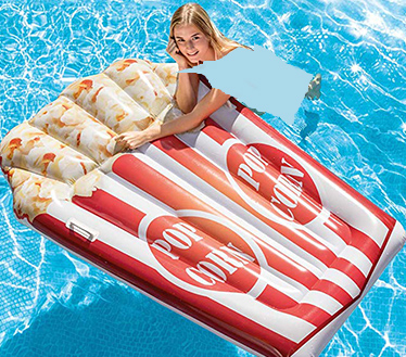 تشک بادی روی آب طرح پاپ کورن یکی از زیبا ترین و جذاب ترین لوازم شنا و تفریحات آبی نوجوان بزرگسال می باشد کگه توسط برند معتبر اینتکس در سال 2019 به تازگی طراحیو تولید شد است که مورد توجه مصرف کنندگان بوده و توجه هر بیننده ای را به خود جلب می نماید. تشک بادی روی اب در این مدل به گونه ای طراحی شده که دارای ارگونوم بدنه مستطیلی بوده که از ابعاد بزرگ قابل استفاده تا دو نفر می باشد که حداکثر وزن قابل تحمل این محصول تا 100 کیلوگرم بوده است، تشک رو اب اینتکس دارای بدنه ای به رنگ قرمز و سفید راه دار در قسمت پایینی به عنوان پاکت و جای نگهداری پاپ کورن ها بوده و در قسمت بالایی خود ذرت ها طراحی شده که به رنگ سفید می باشد که دارای جلوه زیبا بوده که به صورت سه بعدی و کاملا واقعی مانند یک پاپ کورن بر روی آب قرار می گیرد که جلوه ای زیبا به محیط اطراف خود می دهد. این محصول دارای جنس بدنه ای از pvc با رویه طرح چرم می باشد که دارای ضخامت لایه ای مناسب بوده که به صورت دو لایه در قسمت کف تشک بادی می باشد که با قرار گیری بر روی سطح آب کاملا مقاوم و با دوام باشد و دچار پوسیدگی نگردد. راه اندازی این محصول بسیار آسان بودعه که توسط پمپ باد محصولات بادی امکان پذیر می باشد و با داشتن وزن بسیار سبک 2 کیلوگرمی به راحتی قابل حمل و جا به جایی می باشد.