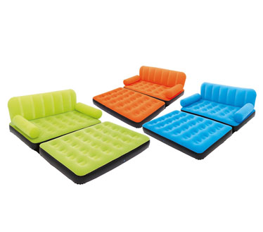 تشک بادی چندکاره محصولی متفاوت و بسیار کارامد تولید شده توسط شرکت bestway است.شما باخریدن یک تشک چندکاره صاحب چند محصول می شوید.زیرا این تشک می تواند تشک دونفره ،تخت یک نفره،کاناپه دونفره،تشک پشتی دار،تشک بادی شیبدارشماباشد بدون این که لازم باشد هرکدام از این ها را جداگانه خریداری کنید.بااین حال حجم کمی دارد و فضای کمی را اشغال می کند.همچنین رنگ بندی زیبای آن دارای رنگهای سبز ،نارنجی و آبی است.جنس تشک pvc و رویه آن مخمل است.نگران راحتی و جنس این تشک نباشید زیرا پا به پای انتظارات شما حرکت می کند و رضایت شمارا بدست می آورد.طول تشک بادی چندکاره 193 سانتی متر،عرض آن 152 سانتی متر و ارتفاع 64 سانتی متر است که نشان دهنده 2 نفره بودن تشک است.ولی تحمل وزن این تشک بالا بوده و تا 3 نفر را هم می تواند پوشش دهد.تحمل وزن آن 250 کیلوگرم است.طراحی رویه علاوه بر راحتی و نرم بودنش همچون سایر تشک های بست وی ضدتعریق ساخته شده و هوارا از خود عبور می دهد و استفاده از آن را برای استراحت های طولانی مدت امکان پذیر می سازد.