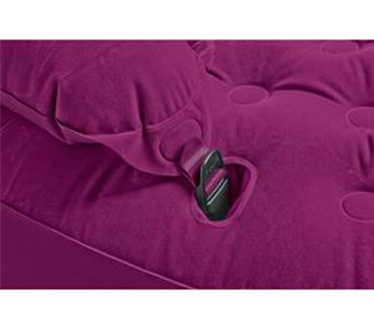 تشک بادی گرد 2018 اینتکس یکی از بهترین و جدید ترین تشک های بادی تولید شده توسط شرکت اینتکس می باشد که با طراحی متفاوتی در قسمت رویه و بسته بندی همراه شده است. این تشک بادی ساختار بسیار خوب و دوست داشتنی بوده که در نگاه اول نظر شما را به سوی خود جلب می کند. بدنه به صورت کامل رنگ بنفش داشته و قسمت رویه آن از لایه های تماما جیر برخوردار است. این لایه ها و در کنار آن ساختار گرد رویه جدید این تشک بادی باعث شده اند تا این تشک بادی به صورت کامل ضد تعریق باشد. قسمت زیرین از لایه های ضخیمی ساخته شده است که سبب شده در استفاده محیط های آزاد کاملا مناسب است. همچنین اتصالات لایه های این تشک بادی نیز بسیار خوب بوده و از پرس های حرارتی و چسب های مخصوص شرکت ایران اینتکس برای استحکام آن استفاده شده است. بدنه به صورت یک تکه و ساده طراحی شده تا مشتریان را به سوی خود جلب کند، تنها یک پشتی اضافه در یک سوی تشک با استفاده از گیره ها نصب شده که باعث می شود بتوانید از آن برای تکیه دادن استفاده کنید. این تشک بادی بسته بندی بسیار کوچکی داشته و حمل آن بسیار ساده است، راه اندازی و نصب آن نیز در حدود 3 دقیقه با پمپ باد برقی و یا دستی زمان می برد.
