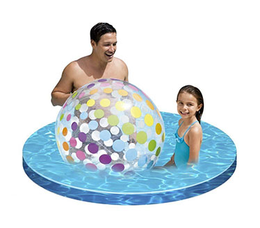 توپ بادی بزرگ اینتکس با طراحی توپی یکی از زیبا ترین و دلنشین ترین اسباب بازی های بادی کودکان می باشد که برای آن ها بسیار سرگرم کننده و جذاب می باشد . این توپ بادی دارای بدنه رنگی بسیار شاد و هیجان انگیز می باشد که چشم هر کودکی را به خود جلب می نماید که در تمامی محیط ها و حتی بر روی سطح آب قابل بازی و سرگرمی می باشد. این توپ بادی بزرگ دارای قطر 183 سانتی متری بوده که برای بازی کودکان بالای 2 سال مناسب می باشد و علاوه بر کودکان برای بازی دسته جمعی بزرگ سالان بر روی زمین و آب بسیار سرگرم کننده بوده است. این توپ بادی دارای جنس بدنه پی وی سی شفاف با توپ های رنگی رنگی می باشد که از رنگ های متفاوتی دور تا دور این توپ قرار گرفته است که با راه اندازی این محصول بادی زیبایی و جلوه ای خاص دارد. این توپ بادی محصول ولی شده سال 2018 شرکت اینتکس بوده که از ضخامت لایه ای مناسب با مقاومت لازم بهره می برد. این توپ بادی با طراحی شاد و دوست داشتنی تفریح و سرگرمی کاملا ایمن با جنس بدنه عالی و ضد حساسیت برای کودکان می باشد که دارای وزن 1 کیلوگرمی کاملا سبک و کم جا بوده و قابل حمل و جا به جایی بسیار راحتی می باشد و توسط برند معتبر اینتکس تولید شده است. برای خرید توپ های بادی کودکان با طرح ها ورنگ های خاص با نمایندگی محصولات بادی تماس حاصل فرمایید.