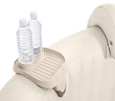 جای بطری جکوزی بادی یکی از جدید ترین و با کیفیت ترین لوازم جانبی تولید شده توسط شرکت اینتکس می باشد که از طراحی و ساخت ایده عالی با ماربرد فراوان تولید شد است که توانسته بسیاری از مشکلات مصرف کنندگان را برطرف نماید و از فروش بسیار بالایی برخوردار می باشد. این جای بطری قابل استفاده در کناره های جکوزی بادی بوده است و با توجه به طراحی خود دز لبه استخر بادی قرار می گیرد که به راحتی می توانید بطری آب، ابمیوه و هر شیء مورد نیاز خود را بر روی آن قرار دهید حتی قابل قرار دادن اشیاء گران قیمت از جمله تلفن همراه ، ساعت و … می باشد. این جای بطری دارای جنس بدنه ای از پلاستیک فشرده بسیار مقاوم و با دوام می باشد که به راحتی نمی شکند و با گذاشتن اسیاء بر روی آن دچار شکستگی و خم شدن نمی شود که این مقاوم بودن محصول از خصوصیات مهم آن می باشد.این محصول به صورتی طراحی شده که دارای دو جای مخصوص می باشد که یک جایگاه برای قرار دادن بطری تعبیه شده و یک سمت به صورت سینی برای قرار دادن هر شیء کوچک نیز می باشد. این جای بطری دارای رنگ بدنه کرم شیک و ساده می باشد که مورد پسند عموم قرار دارد.