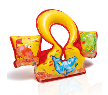 جلیقه بادی شنا کودک یکی از مناسب ترین و با کیفیت ترین جلیقه های بادی مخصوص کودک می باشد که از طرح و رنگ بسیار زیبا و کودک پسندانه ای برخوردار می باشد. این جلیقه بادی کودک دارای بازوبند متصل به بدنه جلیقه می باشد که که به صورت طرح دار بوده و از ایمنی لازم برای کودکان شما برخوردار می باشد. این جلیقه بادی شنا کودک یکی از جدیدترین جلیقه های بادی برای تفریحات و نجات غریق کودکان در آب های آرام و آزاد بوده که در میان جدیدترین نوع جلیقه ها نیز قرار گرفته است و از کیفیت و دوام بالا برخوردار بوده است. این کالا از سه قسمت متصل به هم طراحی شده و از سه محفظه باد جداگانه بهره می برد که در واقع علاوه بر جیلیقه نجات دارای بازو بند متصل می باشد که ایمنی این محصول را بالا برده است. قسمت میانی این جلیقه بادی نیز همانند دست ها توسط یک قفل پلاستیکی به بدنه متصل می شود. این جلیقه نجات کودک بدنه ای ساخته شده از PVC مقاوم با روکش طرح چرم داشته که به خوبی در برابر دما و فشار آب مقاوم خواهد بود. از دیگر ویژگی های این جلیقه داشتن وزن بسیار مناسب و سبک این جلیقه شنا کودک می باشد. البته گفتنی است که قسمت قفل پلاستیکی این محصول بادی از قابلیت رگلاج و تغییر سایز نیز بهره می برد. در صورت خرید جلیقه بادی کودک با نمایندگی اینتکس در ایران تماس حاصل فرمایید.