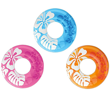 حلقه بادی شنا طرح گل یکی از جدید ترین و پر فروش ترین لوازم شنا و تفریحات آبی کودک و نوجوان می باشد که قابل استفاده بالای سنین 4 سال بوده و تا 60 کیلوگرم تحمل وزن دارد. این حلقه بادی تولید شده توسط برند معتبر اینتکس بوده که یکی از معروف ترین و معتبر ترین تولید کنندگان محصولات تفریحی و سرگرمی می باشد. حلقه بادی شنا اینتکس کد 59251 یکی از زیبا ترین شناور های روی آب می باشد . این محصول دارای بدنه ای گرد با رنگ نارنجی آرامش بخش می باشد که گل هایی بزرگ به رنگ سفید روی سطح آبی طراحی شده است همچنین این حلقه بادی ساخته شده از pvc با رویه طرح چرم بوده که از طراحی شفاف و شیشه ای بهر می برد. حلقه بادی شنا با قطر 91 سانتی متری دارای وزن 400 گرمی بوده که از حمل آسان بهره می برد و به راحتی قابل حمل و جا به جایی می باشد.. حلقه بادی شنا دارای راه اندازی آسان و سریع بوده که توسط پمپ باد محصولات اینتکس راه اندازی می گردد. این محصول بادی دارای سه رنگ مختلف می باشد که از رنگ بندی نارنجی ، آبی و صورتی بهره می برد. این حلقه بادی با بدنه شفاف با قرار گیری بر روی سطح آب زیبایی خاص به وجود آورده و چشم هر بیننده ای را به خود جلب می نماید. این محصول دارای برچسب تعمیر بوده که در صورت بروز مشکل تعمیر شده مجددا قابل استفاده می باشد.