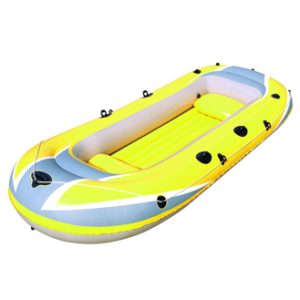 قایق بادی سه نفره کلاب 300 از بهترین و با کیفیت ترین قایق های بادی تولید شده با طراحی و رنگ شیک و شاد می باشد که با بهترین و با دوام ترین جنس تولید شده است و توسط شرکت ایران اینتکس با قیمت عالی به فروش می رسد. این قایق بادی یکی از سری قایق های بادی تفریحی، سبک و مقرون به صرفه شرکت اینتکس می باشد که مناسب تفریحات آبی و ورزشی از جمله ماهیگیری بوده است و برای استفاده در انواع آب های آرام و کم عمق مورد استفاده قرارمی گیرد. این قایق بادی ساخته شده از جنس PVC با روکش تمام طرح چرم دو لایه می باشد که از کیفیت قابل قبولی برخوردار می باشد. این قایق بادی دربرابر فشار و دمای متفاوت آب بسیار مقاوم بوده است و از کف بادی و مواج برای ایجاد یک نشیمنگاه راحت بهره مند است که راحتی بی نظیر به ارمغان می آورد. این قایق بادی دارای نشیمنگاهی با طراحی مواج بوده که هنگام نشستن بر روی آن احساس لذت بخشی را تجربه نمایید. اما این قایق بادی از دو پارو پلاستیکی و همچنین اهرم نگهدارنده پارو در قسمت لبه خود بهره مند بوده که حمل قایق را راحت تر می نماید و دارای یک طناب نجات نیز بر روی بدنه این محصول تعبیه شده است که این محصول ر کامل تر می نماید. این قایق بادی قابلیت حمل بسیار آسوده و راحت را داشته و راه اندازی آن در کم ترین زمان ممکن انجام می گیرد. این قایق بادی توسط یک پمپ باد دستی نیز که در کنار این قایق قرار دارد به راحتی راه اندازی می شود.