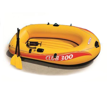 قایق بادی سه نفره کلاب 300 از بهترین و با کیفیت ترین قایق های بادی تولید شده با طراحی و رنگ شیک و شاد می باشد که با بهترین و با دوام ترین جنس تولید شده است و توسط شرکت ایران اینتکس با قیمت عالی به فروش می رسد. این قایق بادی یکی از سری قایق های بادی تفریحی، سبک و مقرون به صرفه شرکت اینتکس می باشد که مناسب تفریحات آبی و ورزشی از جمله ماهیگیری بوده است و برای استفاده در انواع آب های آرام و کم عمق مورد استفاده قرارمی گیرد. این قایق بادی ساخته شده از جنس PVC با روکش تمام طرح چرم دو لایه می باشد که از کیفیت قابل قبولی برخوردار می باشد. این قایق بادی دربرابر فشار و دمای متفاوت آب بسیار مقاوم بوده است و از کف بادی و مواج برای ایجاد یک نشیمنگاه راحت بهره مند است که راحتی بی نظیر به ارمغان می آورد. این قایق بادی دارای نشیمنگاهی با طراحی مواج بوده که هنگام نشستن بر روی آن احساس لذت بخشی را تجربه نمایید. اما این قایق بادی از دو پارو پلاستیکی و همچنین اهرم نگهدارنده پارو در قسمت لبه خود بهره مند بوده که حمل قایق را راحت تر می نماید و دارای یک طناب نجات نیز بر روی بدنه این محصول تعبیه شده است که این محصول ر کامل تر می نماید. این قایق بادی قابلیت حمل بسیار آسوده و راحت را داشته و راه اندازی آن در کم ترین زمان ممکن انجام می گیرد. این قایق بادی توسط یک پمپ باد دستی نیز که در کنار این قایق قرار دارد به راحتی راه اندازی می شود.