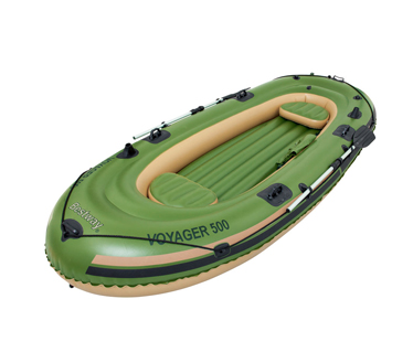 قایق بادی سه نفره voyager 500 یکی دیگر از قایق های بادی تولید شده توسط شرکت بست وی بوده که از جنس PVC با الیاف شمعی و همچنین روکش برزنتی می باشد. قایق بادی سه نفره که طراحی شده برای تفریحات آبی و همچنین ماهیگیری دارای کف بادی به صورت مواج بهره می برد. این قایق بادی دارای دو نشیمنگاه بادی بوده که توسط دریچه های باد جداگانه ای باد شده و راه اندازی می شوند. از ویژگی های بسیار خوب این قایق داشتن وزن مناسب و ایجاد تعادل بالا بر روی انواع آب های آرام می باشد. این قایق بادی بر روی قسمت لبه خود از اهرم مخصوص ماهیگیری و همچنین نگهدارنده پارو برخوردار بوده و بر روی خود از یک طناب نجات بهره می برد. این قایق بادی دارای دستگیره مخصوص حمل قایق، کیسه حمل اشیا و قابلیت نصب موتورمی باشد. ازوسایل همراه این قایق می توان به یک جفت پارو آلومینیومی ضد زنگ و مقاوم و همچنین پمپ باد دستی اشاره نمود. اما این قایق بادی می تواند بهترین گزینه برای استفاده در آب های ارام دریاچه ها و رودخانه ها باشد.