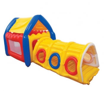 چادر بازی طرح تونل از سری چادر های ساخته شده توسط برند اینتکس می باشد که به تازگی وارد بازار شده است این چادر بازی یک تونل به عنوان ورودی دارد که این تونل را می توانید از چادر جدا کنید تمامی قسمت های این چادر بازی از نوع بادی می باشد برای باد کردن این محصول می توانید از پمپ های باد اینتکس استفاده کنید از این چادر بازی می توانید به عنوان محل خواب کودک نیز استفاده کنید . ابعاد این چادر بازی کودک برابر است با طول:۱۳۲ سانتیمتر عرض: ۹۷ سانتیمتر ارتفاع: ۱۱۴ سانتیمتر محصول چادرهای بازی intex دارای رنگهای بسیار شاد و متنوع برای بازی و سرگرمی کودکان در منزل، مهد کودک ها یا فضای باز بدنه پلیستر مرغوب نصب سریع و آسان دارای کیف حمل.این چادرها قابلیت شستشودارند همراه باتشک بادی وتونل فروشگاه ایران اینتکس تمامی محصولات خود را با ضمانت اصالت کالا و نازلترین قیمت به فروش میرساند . همانطور که گفته شد این چادر بازی تونل دار می باشد به همین خاطر نظر بیشتر کودکان را نسبت به خودش جلب میکند. این روز ها چادر بازی کودک را می توان به عنوان یک محصول محبوب برای کودکان یاد می شود . بر روی بدنه ی این چادر بازی پنجره های با توری طراحی شده که هوای داخل چادر را تهویه می کند .