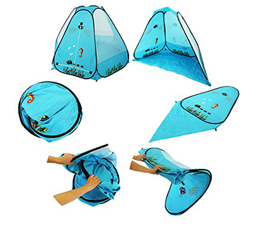 چادر بازی کودک توری طرح آکواریوم یکی از زیبا ترین و جذاب ترین چادر های بازی کودک می باشد که قابل استفاده در هر مکان و محیط بوده است و از کیفیت بسیار عالی بهره می برد. این چادر بازی کودک محصولی مناسب برای استراحت و بازی کودکان بوده است که از طرح و رنگ بسیار دلنشین و آرامش بخشی برخوردار بوده است که توانسته محصولی بسیار ایده آل برای کودکان و خردسالان بوده است. این چادر بازی کودک دارای فضای داخلی بزرگ و راحت بوده است که قابل استفاده 2 الی 3 کودک به طور همزمان می باشد. این محصول بازی از جنس بدنه ای تولید شده است که کاملا ضد حساسیت بوده و از مواد عالی بدون هیچ گونه مشکلی برای کودکان ساعت ها قابل استفاده می باشد. این چادر بازی کودک بهترین گزیه برای استفاده در محیط باز می باشد که هنگام استفاده در خارج از منزل استفاده کودکان را از تابش نور خورشید محافظت می نماید. این چادر کودک سبک و راحت دارای ساک حمل برای حمل و نقل راحت تر می باشد که از جنس ضد آب برخوردار می باشد. چادر کودک طرح آکواریوم بهترین سرگرمی برای بچه ها بوده که خزیدن، راه رفتن، پرش و یا بازی در داخل چادر همراه با اسباب بازی ها و توپ های رنگی خود تمرین می نمایند که موجب بروز استعداد ها و تخیلات ذهنی آن ها در حریمی خصوصی می گردد. این چادر بازی کودک دارای رنگ بدنه آبی آرام با پنجره های توری می باشد که بهترین هدیه برای کودکان محسوب می گردد.