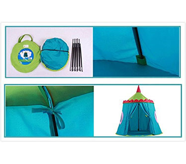چادر بازی کودک با طرح قلعه شاهزاد یکی از زیبا ترین چادر های بازی کودکان می باشد که از طرحی شیک و رنگی بهره می برد که این رنگ بندی شاد تاثیر به سزایی در روحیه کودکان داشته است. این چادر بازی کودک می تواند یک فضای کاملا مناسب و جاداری را برای خود کودک همراه اسباب بازی هایشان فراهم آورد. این چادر بازی کودک دارای ابعاد و ارتفاع مناسب بوده که حتی برای بزرگسالان می تواند در داخل چادر جا داشته باشد که کودکان با مادر و یا پدر خود در داخل چادر بازی نمایند و ساعت ها هیجان و لذت را برایشان به ارمغان آورید. از این چادر بازی کودک به دلیل داشتن جنس بدنه بی نظیر می توان در اتاق ، پارک ، مسافرت ها و حتی مهد کودک ها استفاده نمود. این چادر بازی کودک بهترین کالا برای ترویج بازی تخیلی و تقویت خلاقیت در کودکان می باشد که تصورات کودکان را در فضای خصوصی شکوفا می نماید. این چادر کودک دارای قابلیت راه اندازی سریع و اسان بدون هیچ گونه ابزاری به صورت فنری می باشد که برای حمل و جا به جایی راحت چادر دارای کیف حمل می باشد که از خاصیت ضد آب بهره می برد. این چادر بازی کودک دارای یک درب ورودی قابل جمع شو می باشد که بچه های زیر 3 ساله می توانند تحت نظارت مستقیم بزرگسالان قرار گیرند. این چادر بازی کودک دارای رنگ بدنه آبی، سبز و صورتی بوده که رنگ بندی بسیار آرامش بخش و زیبایی می باشد و. به محیط اطراف جلوهخ ای خاص می بخشد.