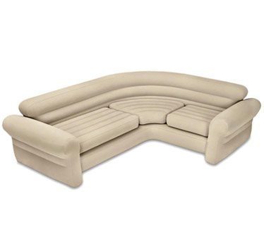 کاناپه بادی 4 نفره اینتکس بزرگترین کاناپه بادی تولید شده توسط شرکت اینتکس بوده که برای استراحت های سطحی، تماشای تلویزیون و حتی پذیرایی از میهمانان در داخل منزل مورد استفاده قرار می گیرد. این محصول در واقع دارای طراحی بدنه L شکل بوده و مشابه دیگر کاناپه های بادی اینتکس می باشد. ساختار بدنه اصلی به گونه ای بوده که از تکیه گاه هایی با ابعاد استاندارد برخوردار بوده و از نشیمنگاه های بادی مجزا با قابلیت جدا شدن از بدنه اصلی را خواهد داشت تا امکان تنظیم ارتفاع سطح نشیمنگاه با زمین نیز فراهم باشد. طراحی سطح رویه این کاناپه بادی 4 نفره منزل به صورت مواج بوده تا هنگام نشستن روی آن اعضای بدن را به خوبی پوشش داده و باعث عبور بهتر جریان هوا به منظور جلوگیری از تعریق بالا شود. روی بدنه اصلی چند دریچه باد تعبیه شده که برای راه اندازی کامل این محصول نیاز به باد زدن از تمامی این دریچه ها خواهد بود. اما جنس بدنه اصلی از نوع پلاستیک PVC وینیل با رویه جیر بوده که از ضخامت خوبی بهره مند می باشد.